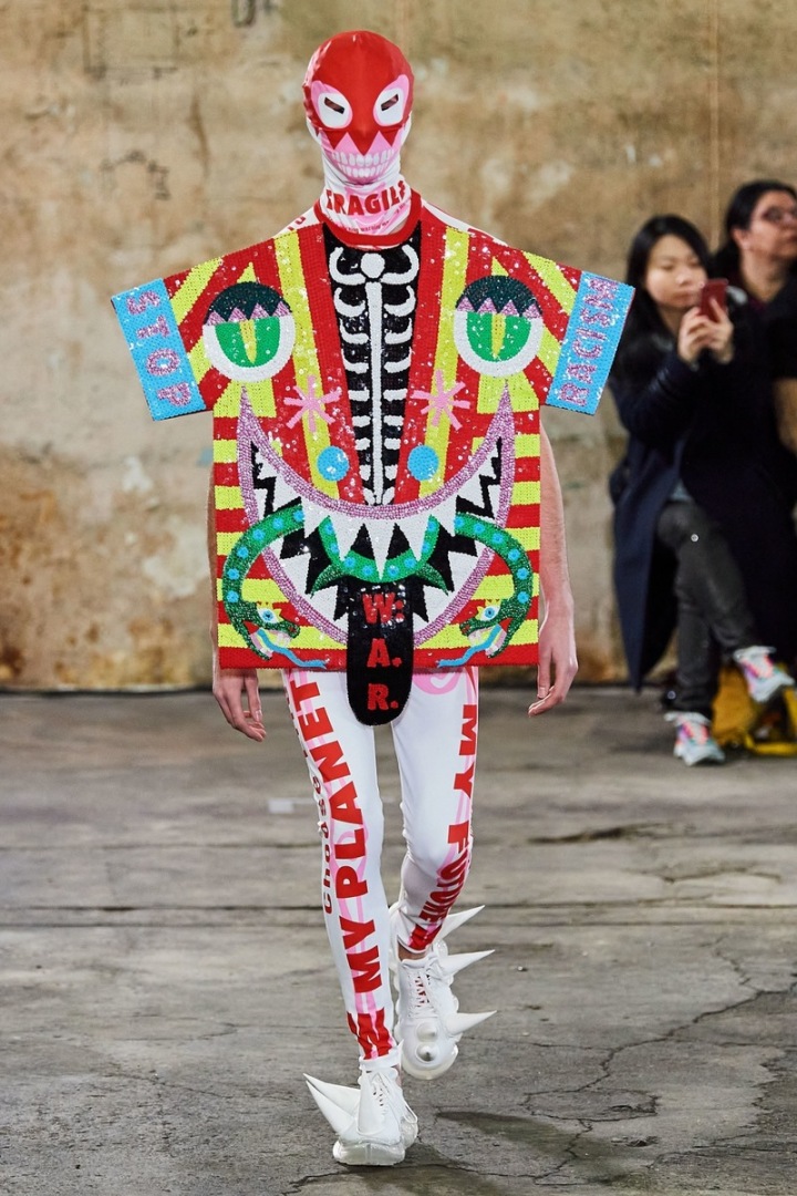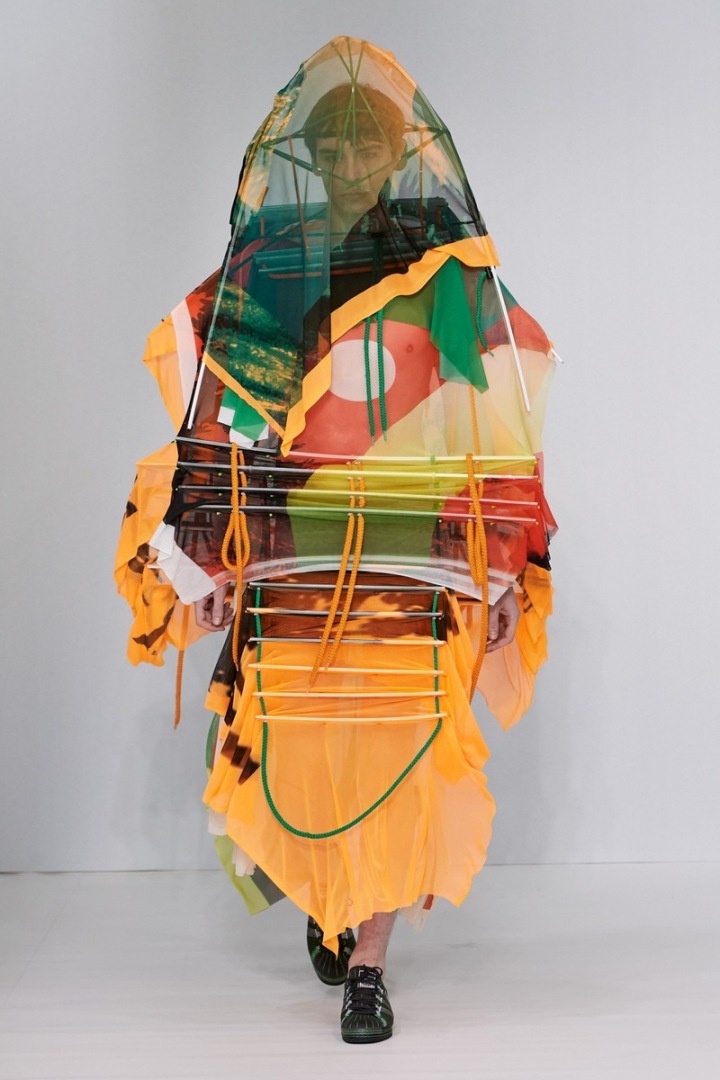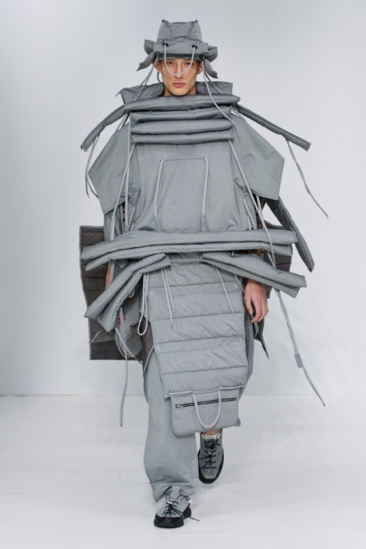 Craig Green nelenil a poslal na přehlídkové molo hned několik podivností. V našem žebříčku toho nejhoršího se ocitla také šedá myška plná polstrovaných výplní a šňůrek. Člověku z toho jde až hlava kolem a přemýšlí, kam by si tenhle oufit mohl obléct. My hlasujeme pro vesmír a blázinec!