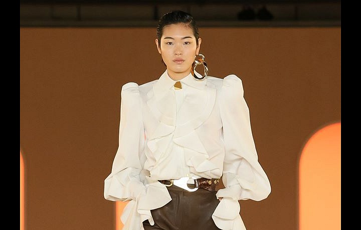 Značka Balmain rozhodně přichází tentokrát s něčím novým, na co u ní nejsme až tak zvyklí. Jaké tři outfity si obzvlášť získaly naši pozornost? Nádherné oranžovočervené šaty s hříšně hlubokým výstřihem a vysokým rozparkem, saténové šaty luxusního atypického střihu a krémový kalhotový kostým.