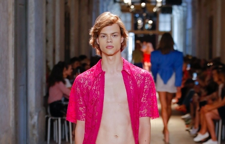 I když je hodně barevná a někdy dost extravagantní, přijde mi spíše nudná. Někdy chce návrhář za každou cenu šokovat, v tomto případě je to snad dokonce naopak. Na modelech jsem nevyčetla nic, co by návrháře jako autora vyznačovalo. Jediné, co mi utkvělo v hlavě, byl model s velkým výstřihem od rozkroku po boky a pak chlupaté sako, které vypadá velmi neforemně. Chlap v šatech, to už jsme viděli tolikrát, že je to vlastně neoriginální samo o sobě. A když bych tam viděla i kousek, který by se dal obléci, nakonec mě vlastně vůbec nebaví.