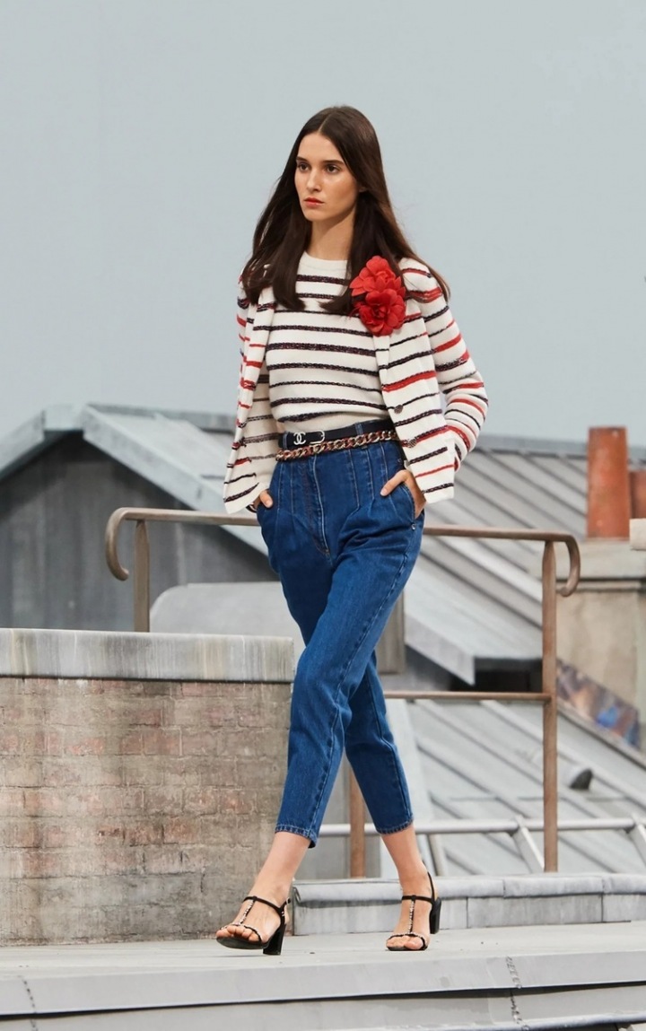 Kolekci SS2020 uzavírá stylová ležérní móda, které vévodí denim a pohodlí. Po vzoru Chanel můžete k oblíbeným džínám obléct pruhy, připnout rudou květinu a vzhůru do Paříže - au revoir!