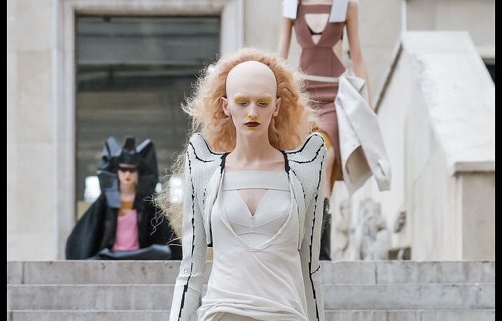 Vedle tohoto „trendy“ účesu představil Rick Owens modely sochařských siluet, okázalé klobouky a sluneční brýle, díky kterým modelky vypadaly jako návštěvnice z jiné galaxie.