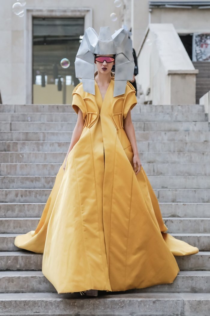 Na maškarní. To je nejspíš jediná příležitost, kam můžete modely odvážného kreativce a amerického designéra Ricka Owense s klidným svědomím vynést. Návrhář žijící řadu let v Paříži zbožňuje předimenzované střihy a drama a v tomto duchu se nese i nová kolekce SS20.