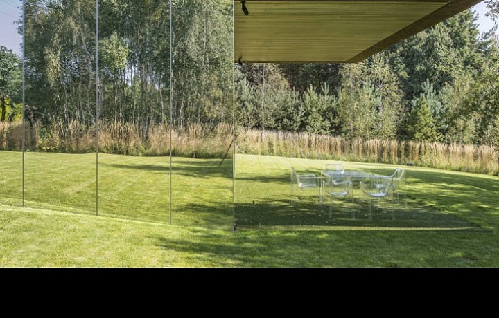 Stavba díky neotřelé kombinaci zrcadlových stěn, posuvných prosklených panelů a průhledných skleněných zábradlí vzbuzuje dojem nekonečného souznění zeleně, masy cihel, betonu a nevtíravého luxusu. Celek nechává vyznít sílu přírody bez jakýchkoliv příkras a díky zrcadlovému efektu výsledný dojem ještě násobí. Pootočením horního patra o devadesát stupňů a jeho konzolovým vysunutím do prostoru soukromé zahrady se z obyčejného cihlového domu stala stavba s dech beroucími perspektivami.