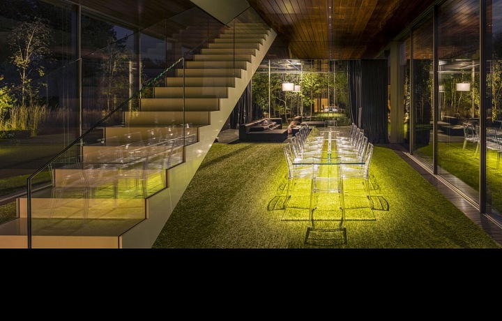 Na první pohled se zdá, že se dům nijak neliší od moderních staveb navrhovaných dnešními architekty a designéry, ale při bližším zkoumání zjistíte, že příroda dům prostupuje skrz naskrz. Přičemž myšlenka stavby byla zřejmá, příroda – zahrada, trávník, stromy se nemusí nacházet pouze kolem objektu, ale mohou být jeho součástí, a zároveň dotvářet harmonii do podoby uceleného obrazu.