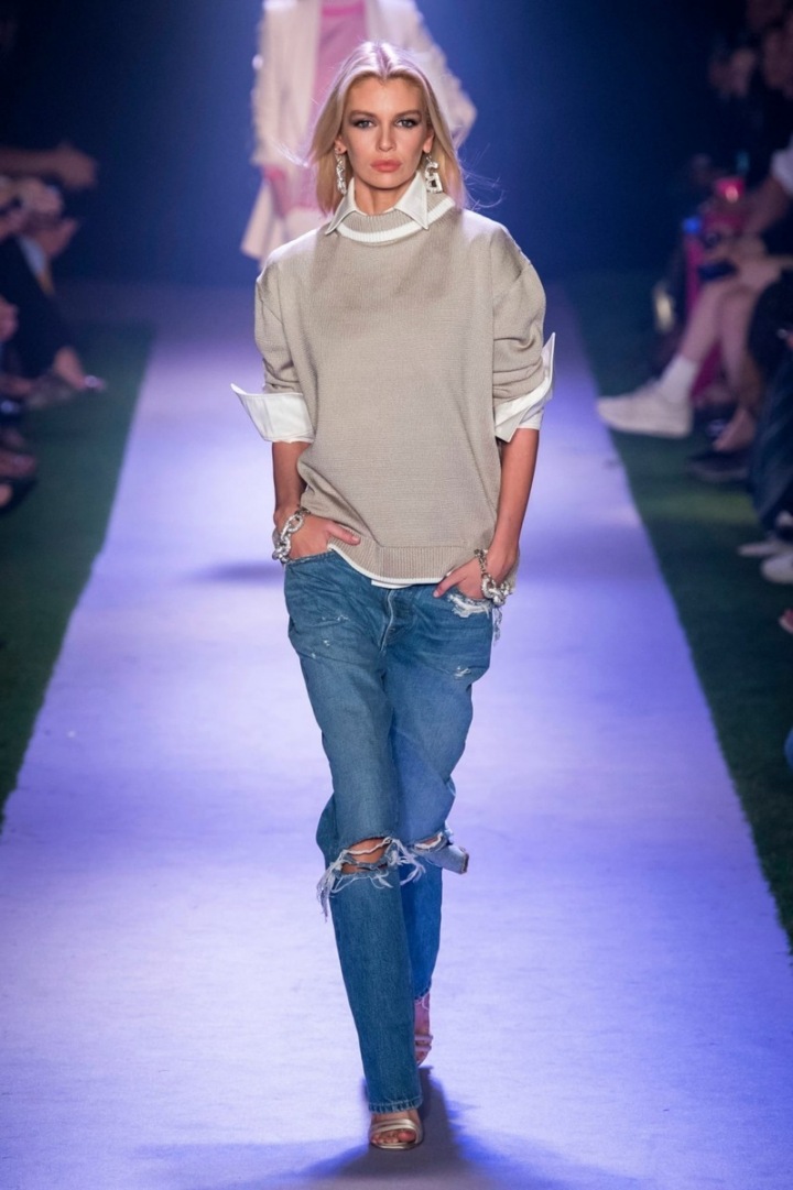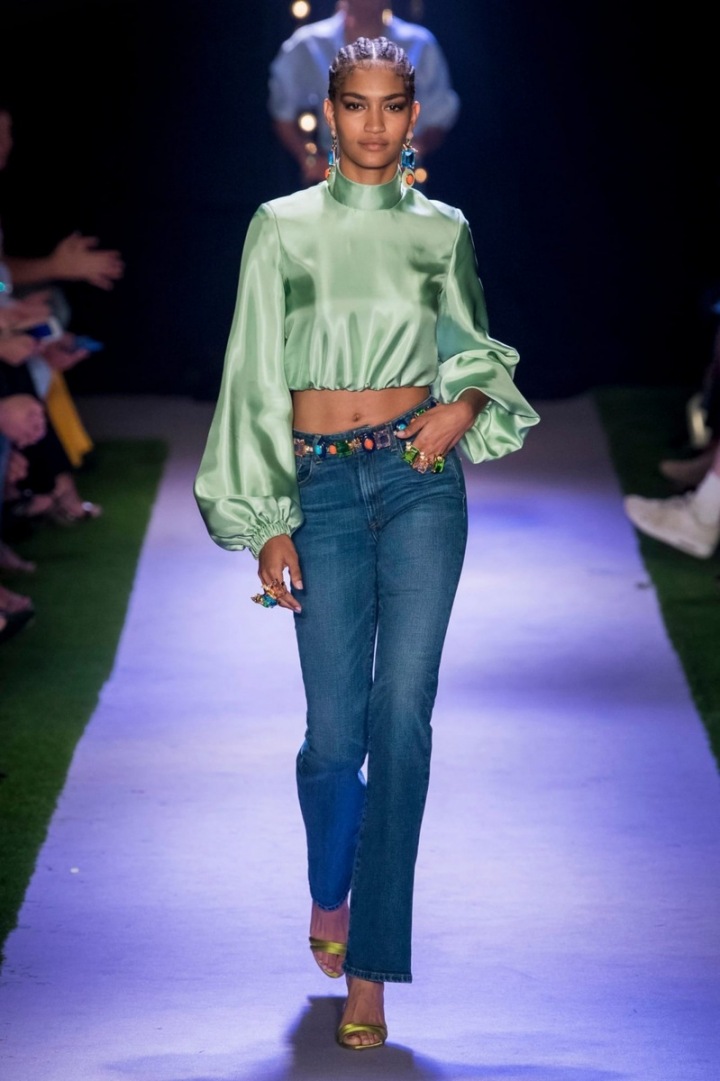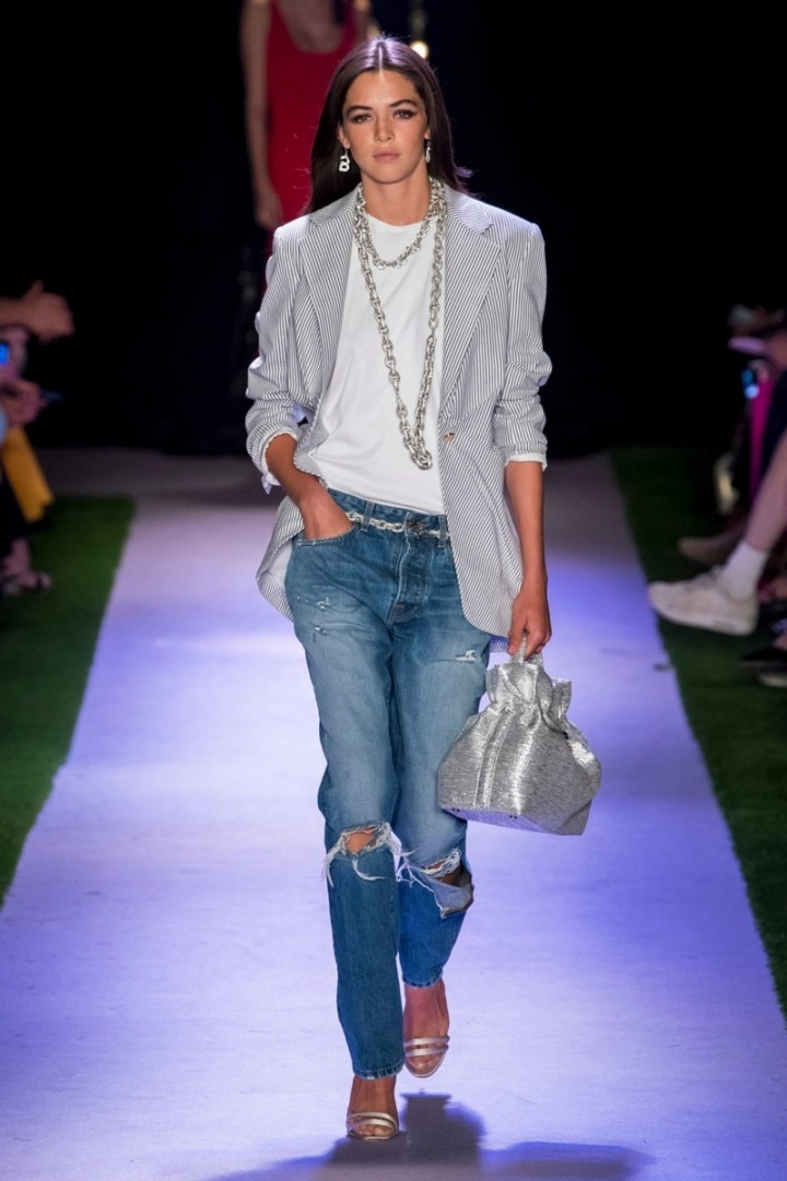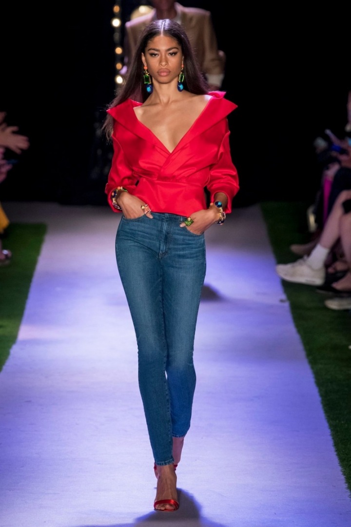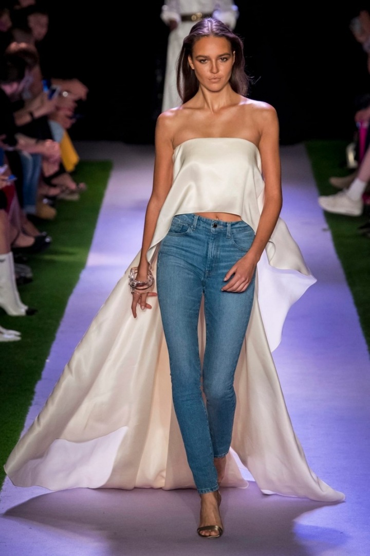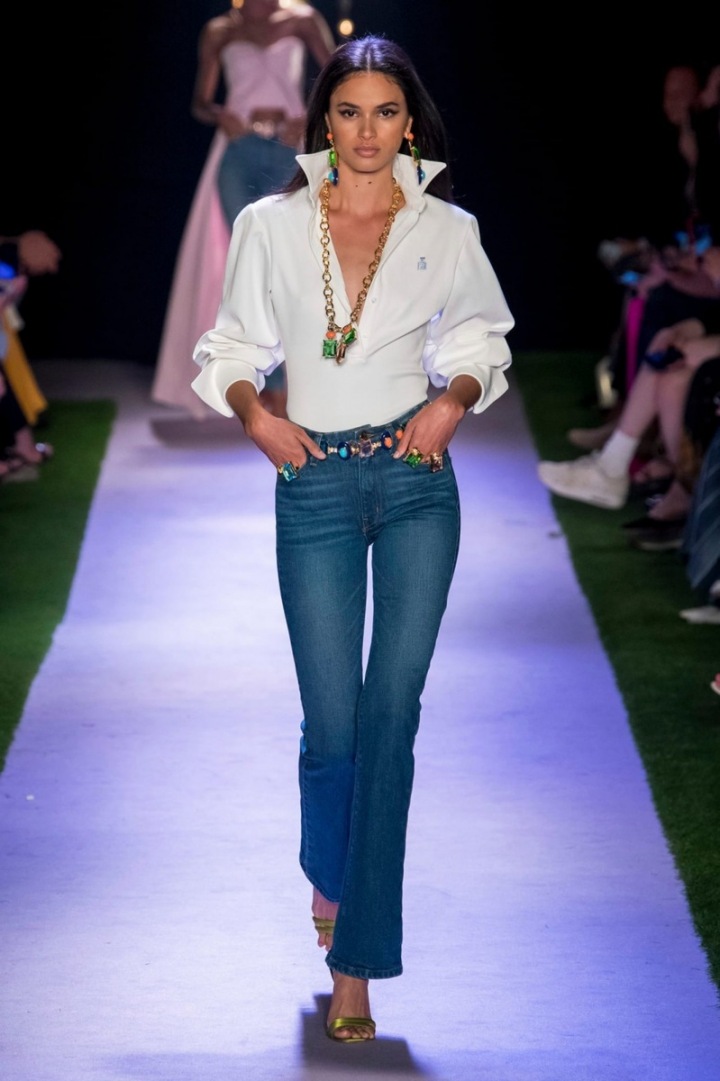 Džíny, bílé triko a tenisky. Tak s touhle oblíbenou módní variací sice Brandon Maxwell nepřišel, ale za to NYFW představil spoustu jiných způsobů, jak nejoblíbenější kousek vynést! Po vzoru amerického designéra můžete džíny obléct třeba k džínové košili, ke košili se svetříkem, k hedvábnému crop topu nebo saténové halence a v žádném z těchto případů nešlápnete vedle.