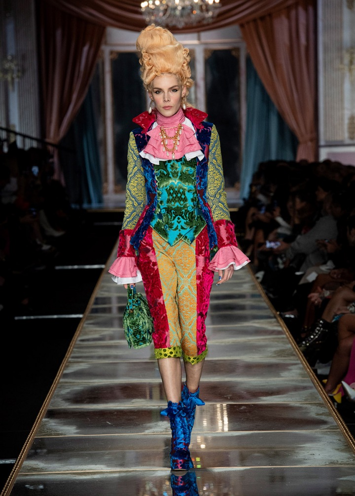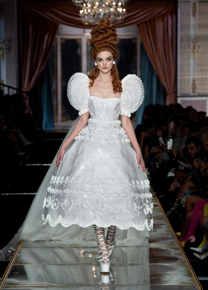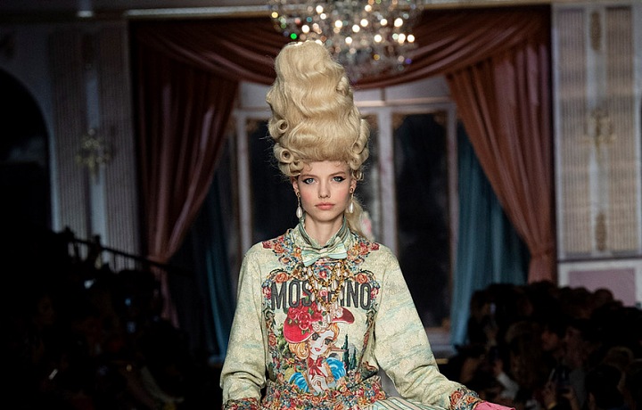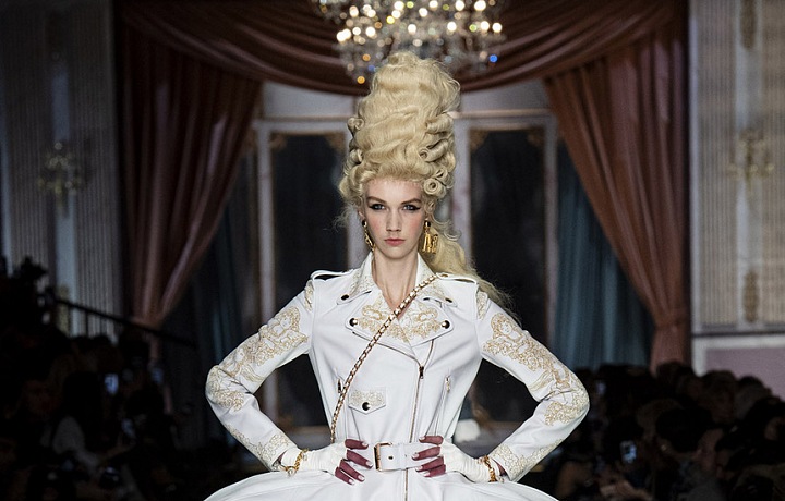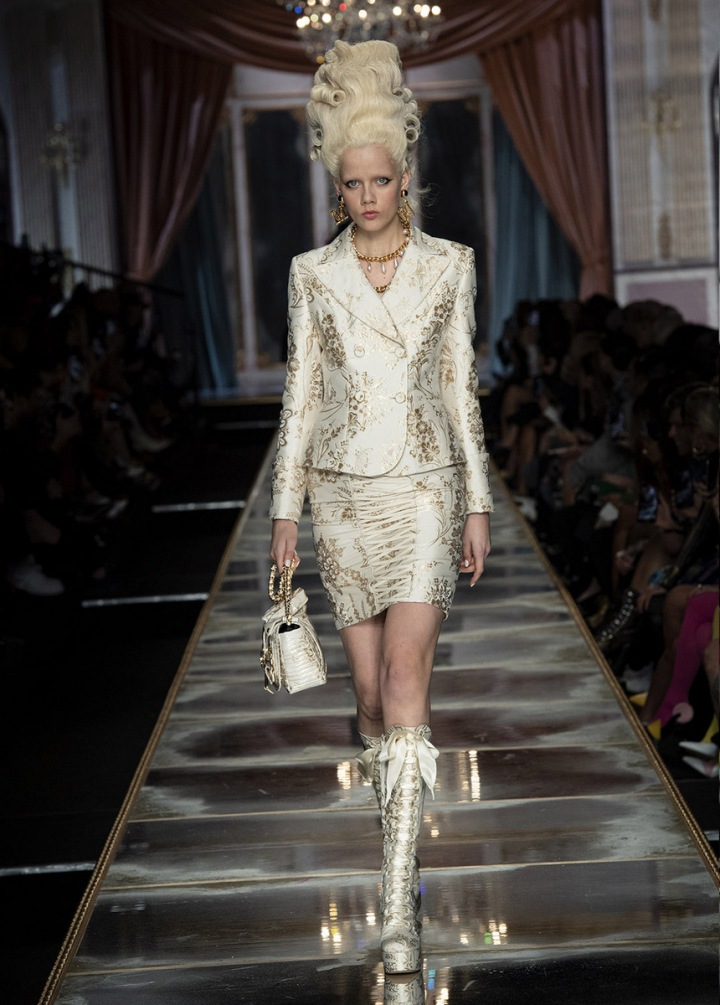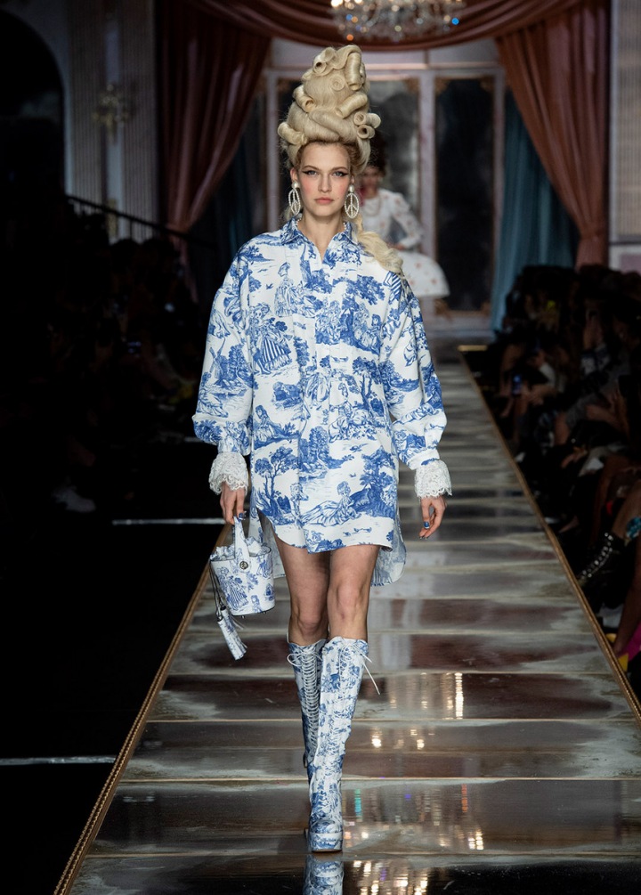 Francouzská revoluce v čele s Marii Antoinettou v kombinaci s osmdesátkovým denimem a výstředními parukami? Koho jiného by tahle luxusní a neotřelá kombinace mohla napadnout než Jeremyho Scotta, který stojí v čele značky Moschino? Šaty v podobě dortu už jsou jen třešničkou na... ehm, prostě zatraceně boží záležitostí!