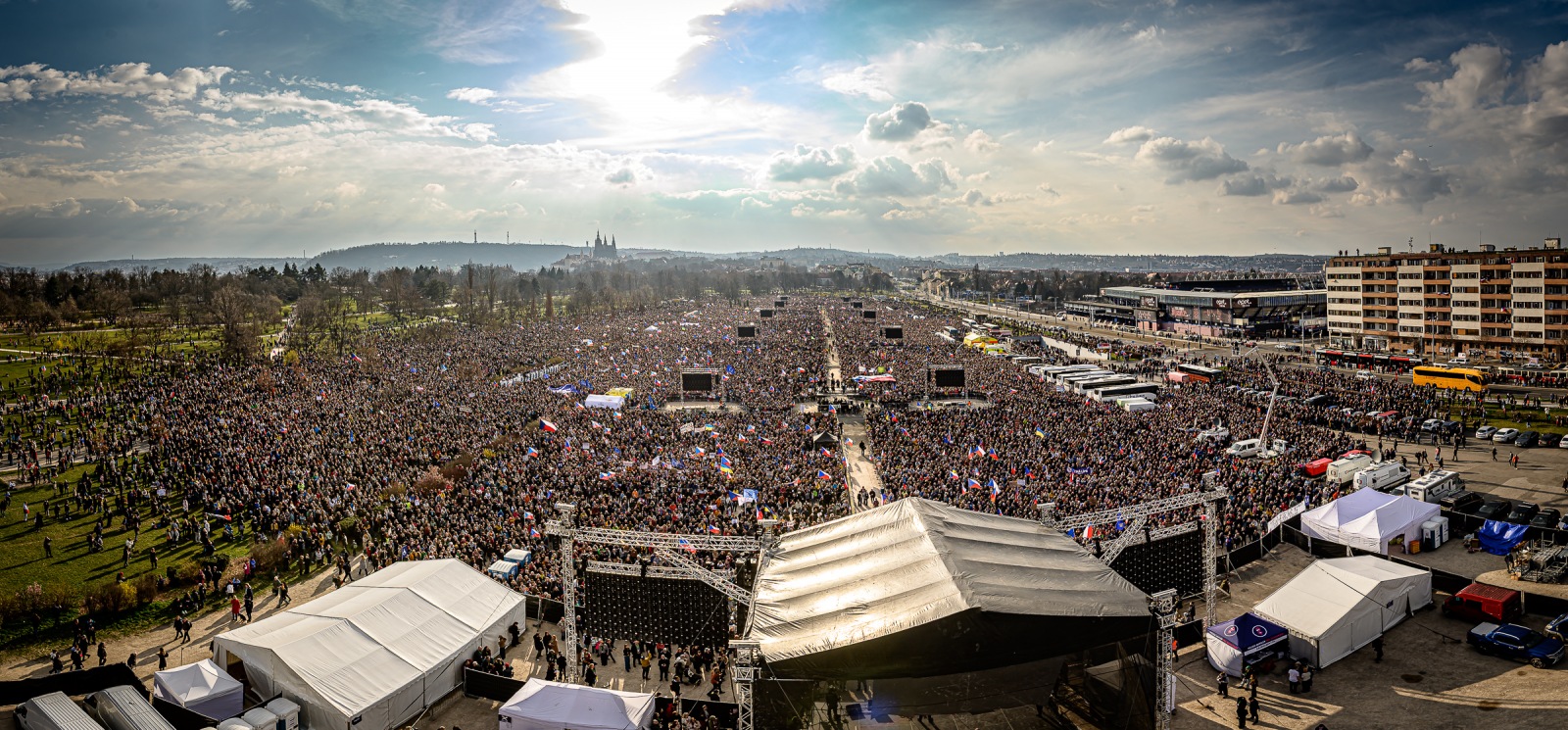 Na Letné se sešel dechberoucí stotisícový dav. Předseda sdružení Mikuláš Minář přímo z pódia reagoval na pohled na zaplněnou pláň a prohlásil: