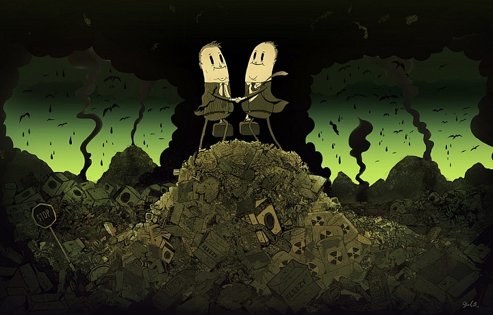 Steve Cuts, soudě dle jeho ilustrací, si myslí, že svět by měl vypadat jinak. Přemíra konzumu, propastný rozdíl mezi chudými a bohatými, lži a zkreslené zprávy, které se na nás valí i to, že jsme stále v práci a ve stresu z honby za penězi, luxusem a věcmi, které v podstatě ani nepotřebujeme, to jsou jen některé z témat pro jeho luxusní ilustrace.