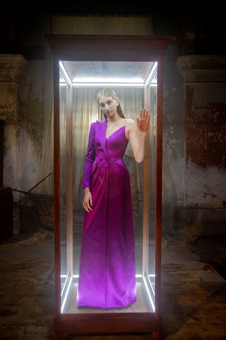 Model, který nás skutečně baví, jsou fialové maxi šaty se sakem na jedno rameno – ty chceme do šatníku! Zuzana Kubíčková předvedla, že je mistryní ve svém oboru a těšíme se na její příští kolekci, nepochybně bude stát za to!